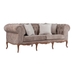 The Maja Chesterfield sofa is crafted using high-quality velvet fabric with precise stitching. The soft gray color evokes a sense of calm and luxury. The delicate tufting and classic button design showcase the authenticity of the Chesterfield style. The curved wooden legs with special carvings add a different and attractive look to the sofa. The three-seater design makes it suitable for various spaces, from small to large.
