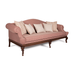 The Chippendale three-seater sofa is a neoclassical masterpiece, upholstered in a soft pink fabric adorned with delicate floral patterns, exuding a regal charm. This armrest sofa features a frame crafted from Georgian beech and pine wood, ensuring both durability and elegance. The intricately carved dark brown wooden legs enhance its classical design, setting it apart from simpler modern sofas. Soft cushions in a cream comfort shade with traditional patterns add a warm and inviting touch, making this cream comfort sofa a perfect blend of style and functionality for those seeking a neoclassical aesthetic.